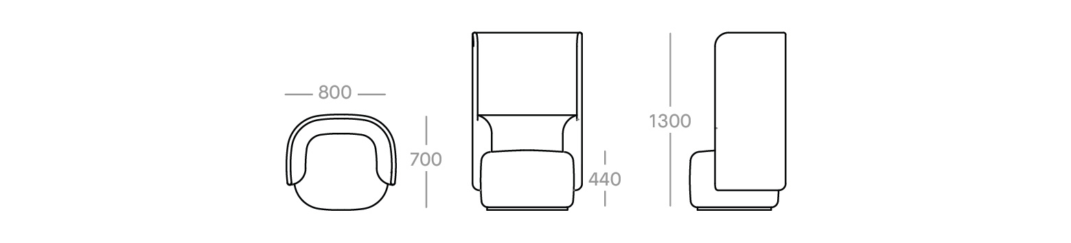 Available in low back version: 800W x 700D x 700H mm