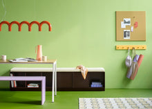 REST III is a multifunctional storage bench with four open compartments and two drawers that offer flexible storage options to refine your space.